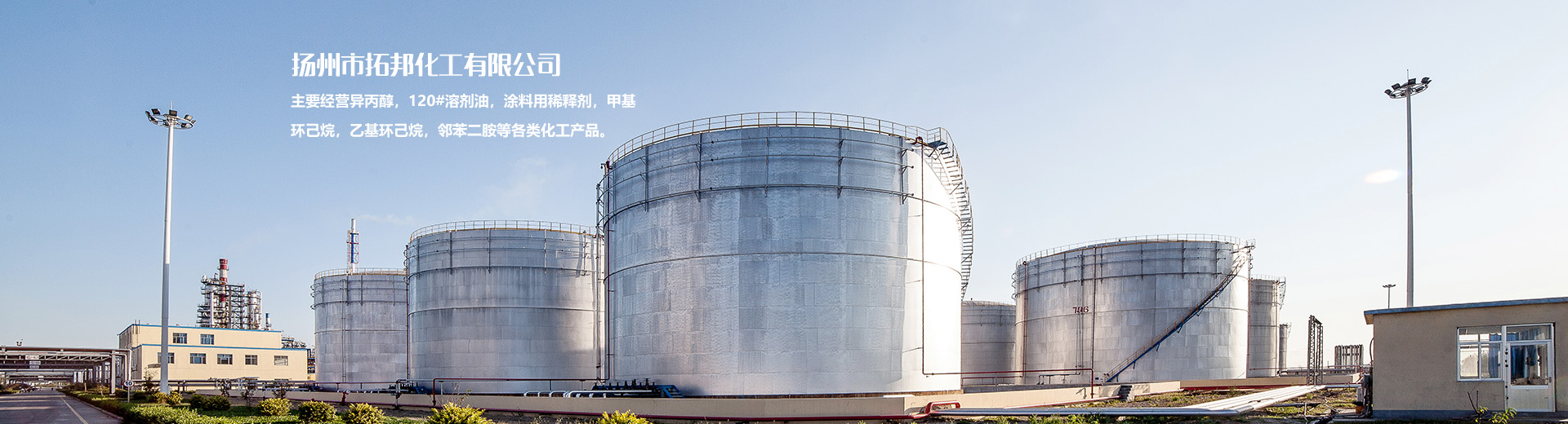 揚(yáng)州市拓邦化工有限公司座落于歷史文化名城揚(yáng)州市東郊,地理環(huán)境優(yōu)越。緊鄰京滬高速、寧啟鐵路和蘇中機(jī)場(chǎng),交通運(yùn)輸十分便捷。 本公司主要經(jīng)營(yíng)異丙醇,120#溶劑油,涂料用稀釋劑,甲基環(huán)己烷,乙基環(huán)己烷,鄰苯二胺等各類化工產(chǎn)品。 公司秉承“誠(chéng)信、專業(yè)、共贏”的經(jīng)營(yíng)理念,堅(jiān)持以質(zhì)量為本,...